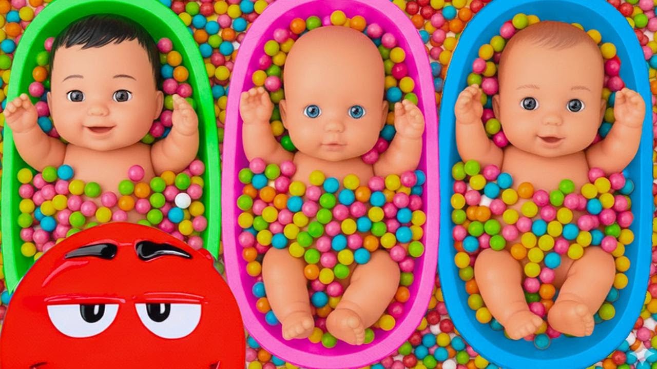 Full of 3 Rainbow BathTubs Candy with M&M's & Magic Slime Cutting Video